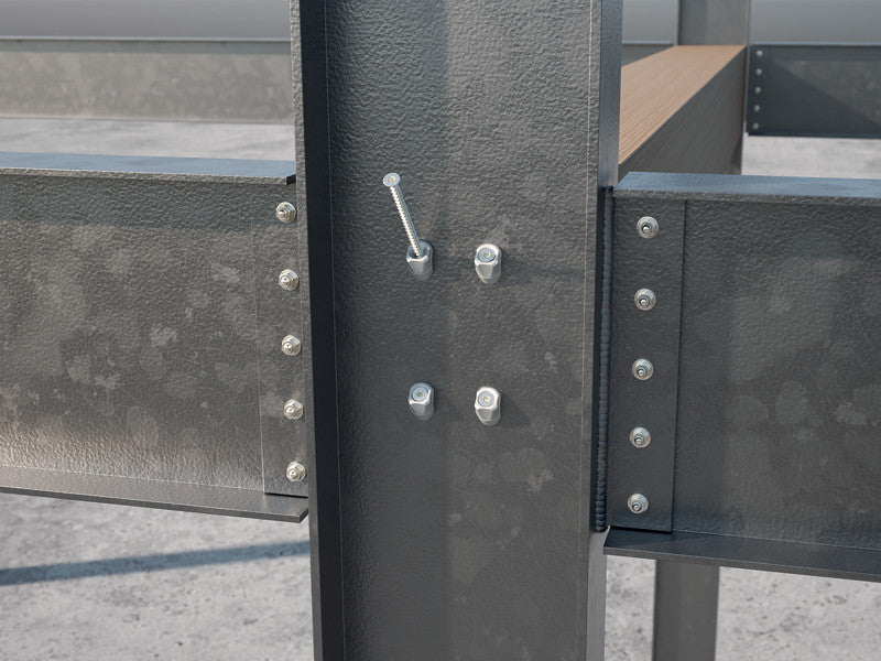VGU is the washer that makes it possible to install VGS wood screws at a 45° angle on steel plates.
